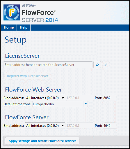 Start | Altova FlowForce Server 2025 | FlowForce Server Setup Page